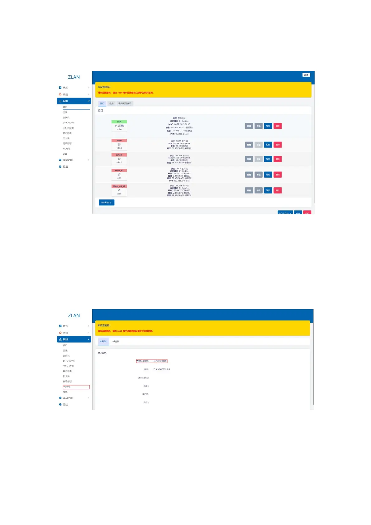 You can view related parameters by clicking Network -> 4G Network.