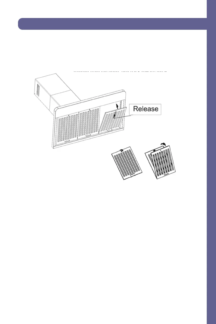 the wall and down. The baffle filter can also be opened for easy cleaning. To open,