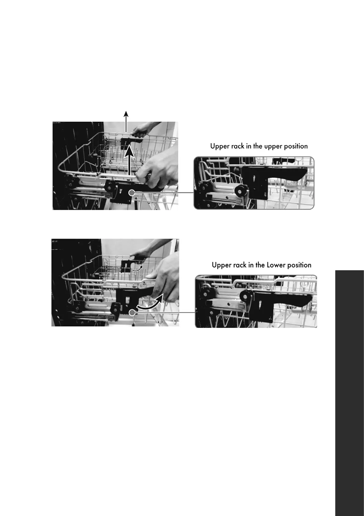 The height of the upper rack can be adjusted to accommodate loading taller dishes in