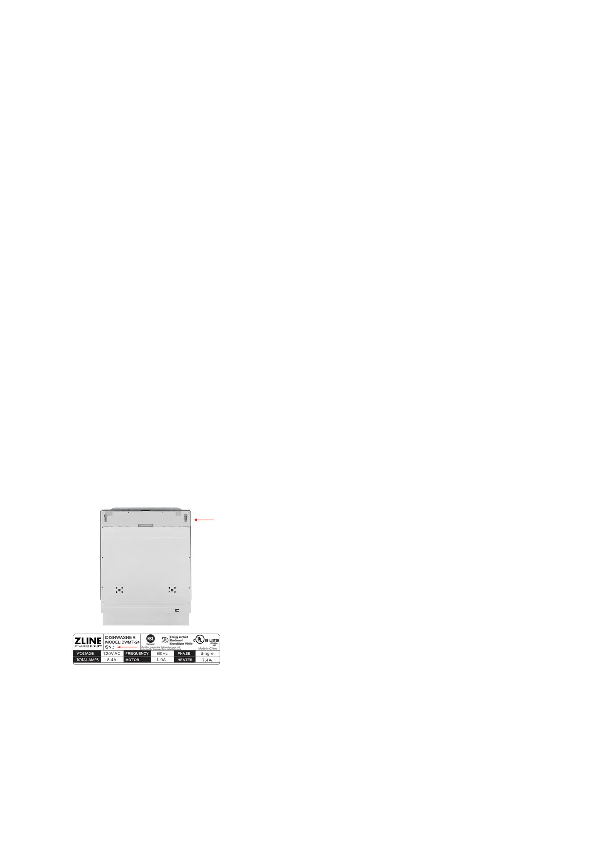 dishwasher. The tag is visible when the dishwasher door is