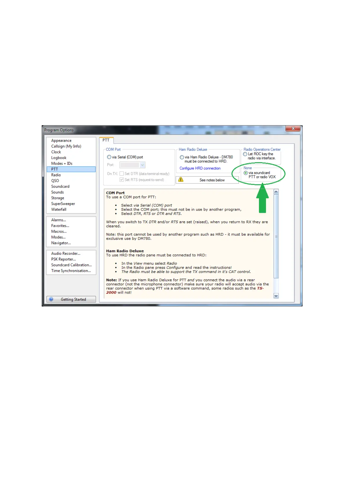 PTT. IN DM780’s PTT configuration you simply select “None-or via Soundcard”