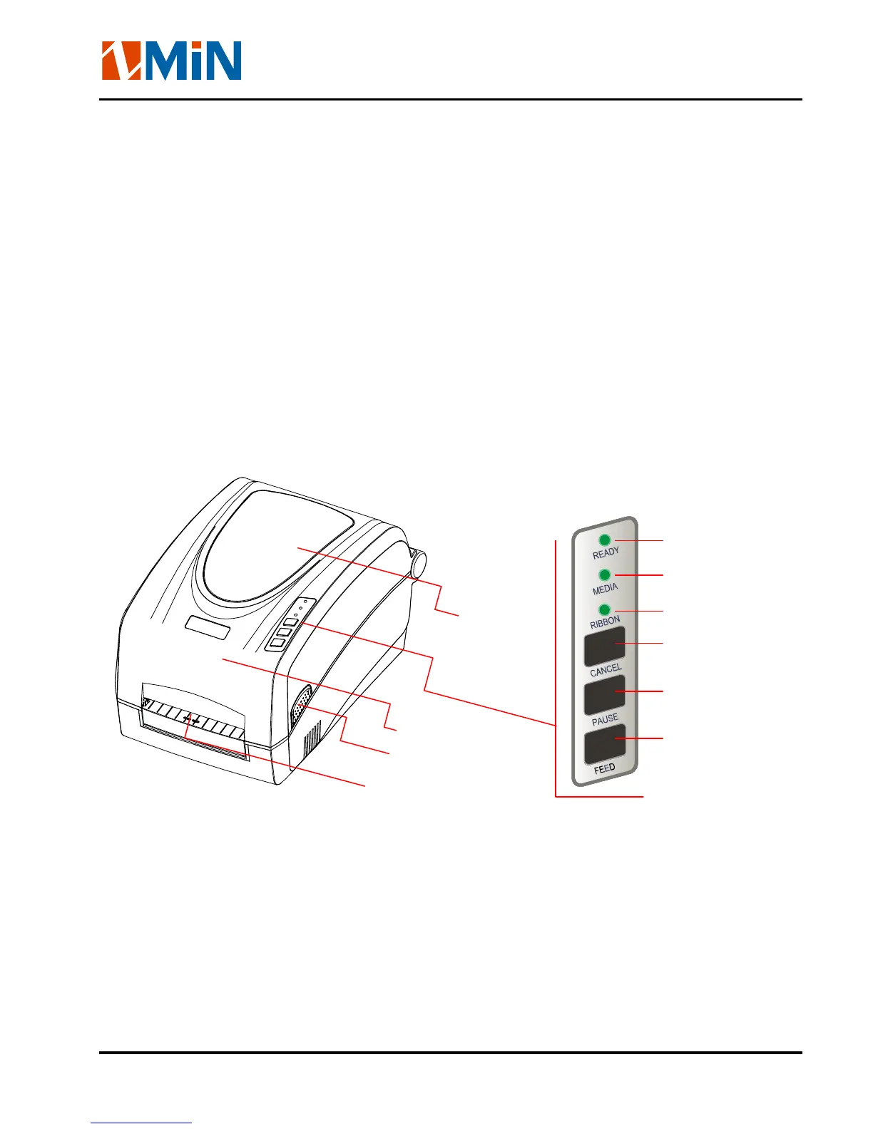 9. READY Indicator Light 10. MEDIA Indicator Light 11. RIBBON Indicator Light