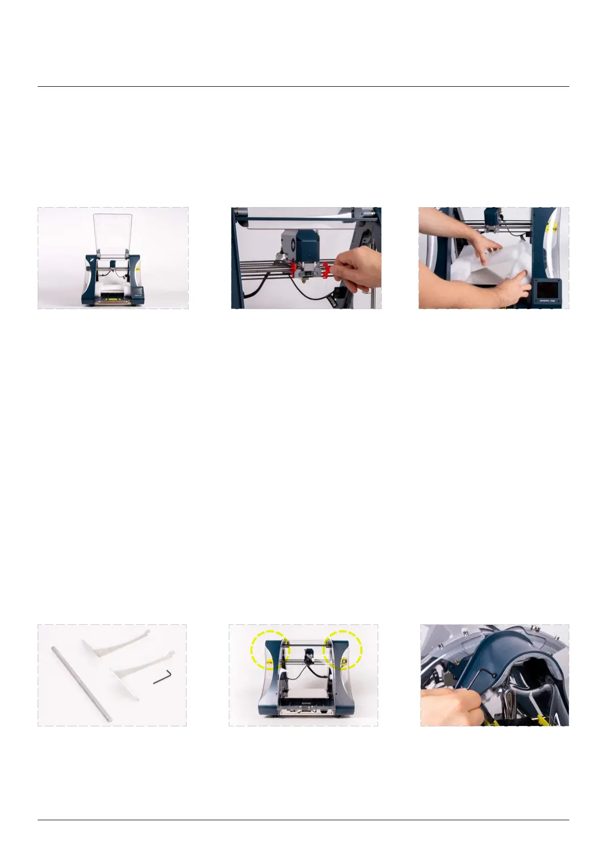 remove the safety band from the toolhead and the protective foam from the worktable.