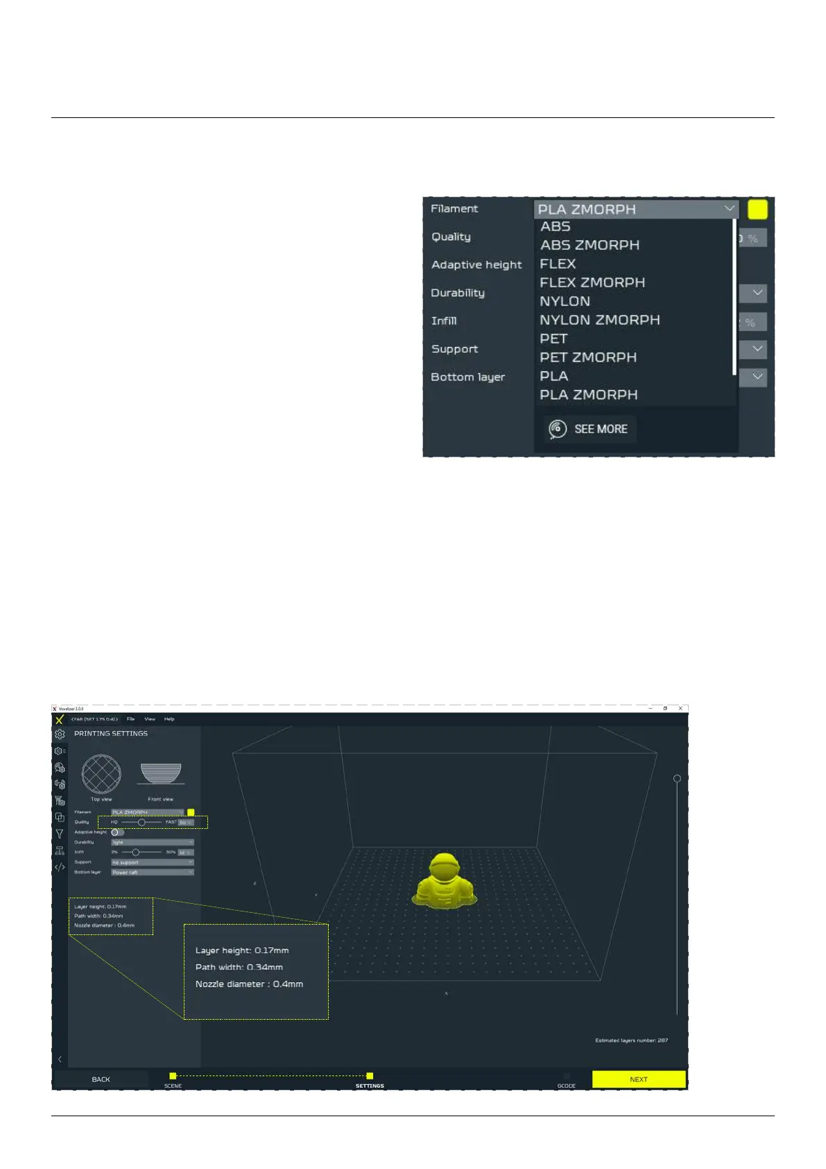 in the project, e.g: PLA ZMorph, ABS ZMorph, PET