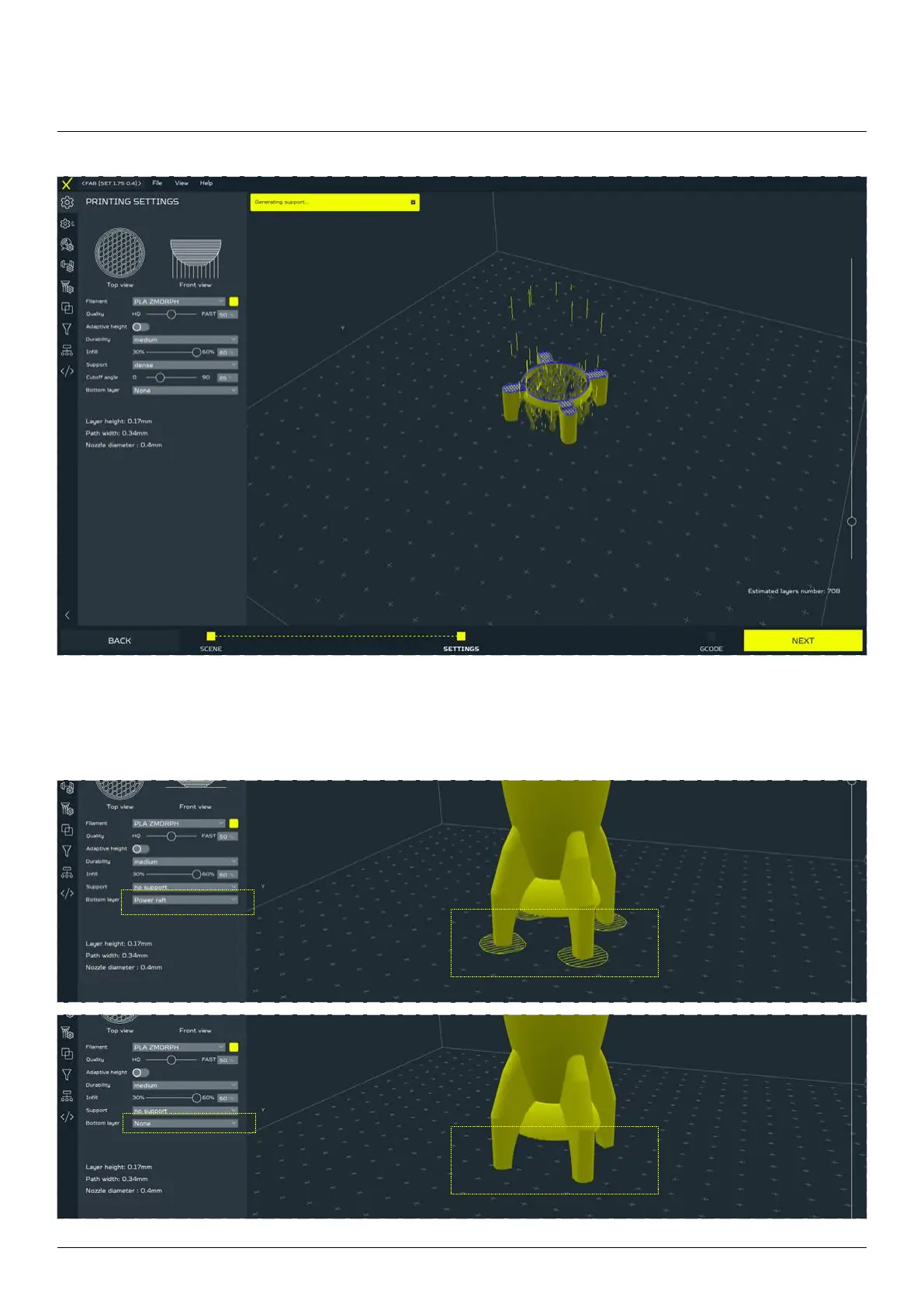 Power raft - an option used to enable/disable power raft, i.e. a platform that increases the adhesion of the