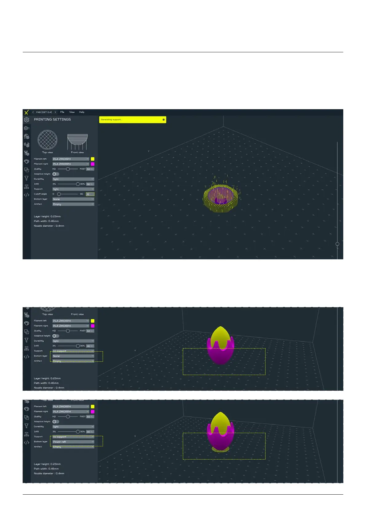 Power raft - an option used to enable/disable power raft, i.e. a platform that increases the adhesion of the