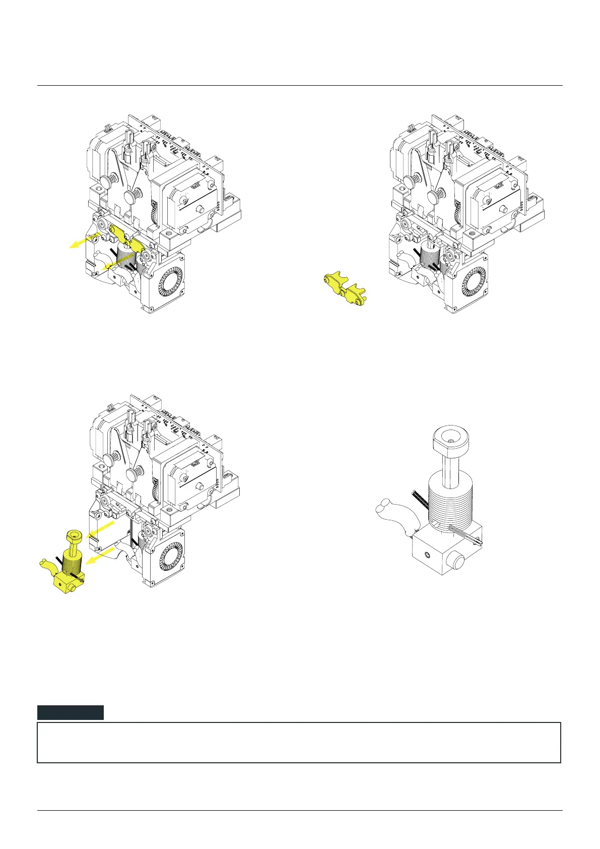 Remove the hotend part from extruder. Insert a new hotend part and install hotend holder.
