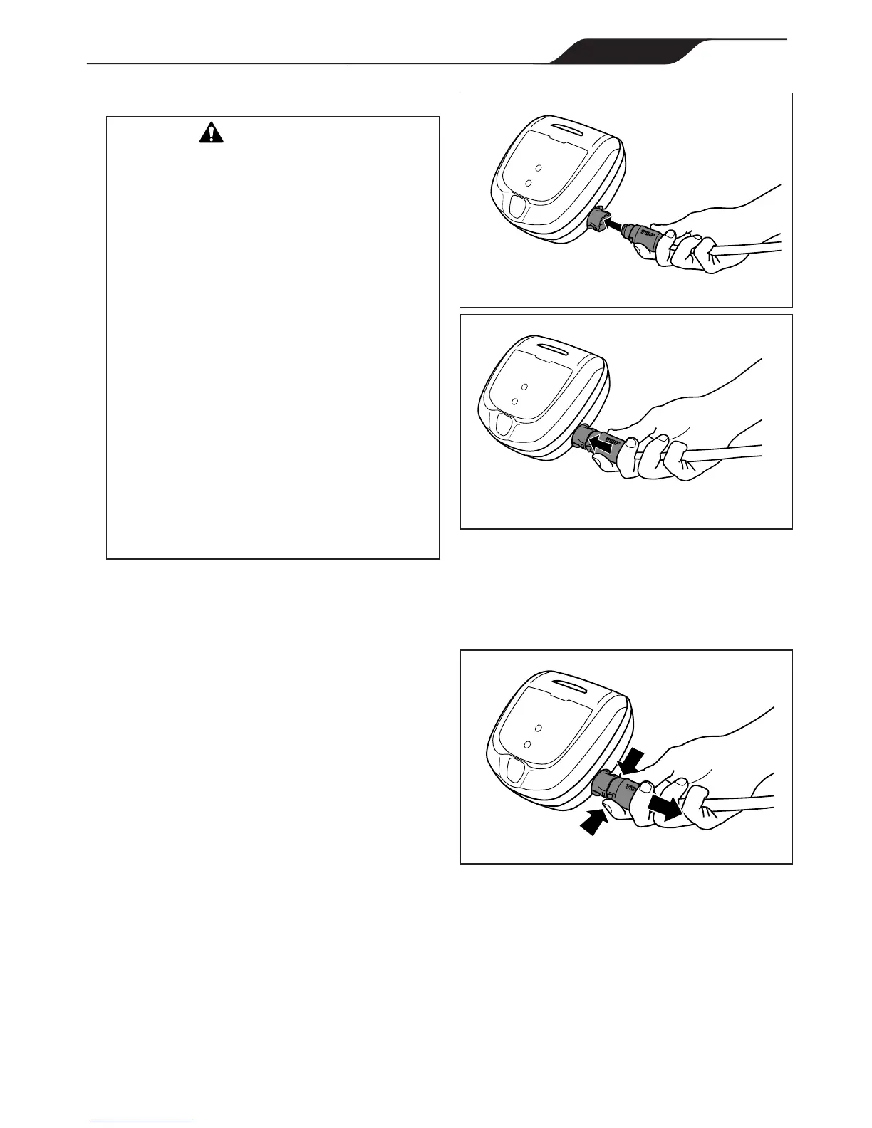 • Grip the power cord rmly on each side and