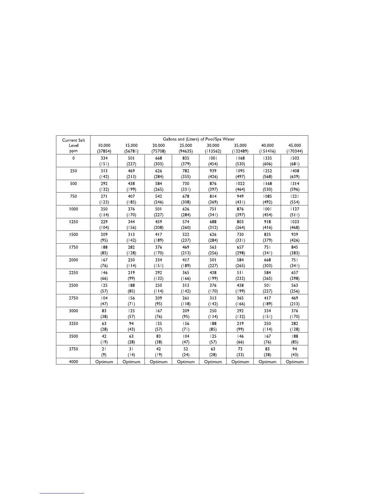 concentration by 500 ppm. In a new pool (where there is no salt residual) of approximately 13,200