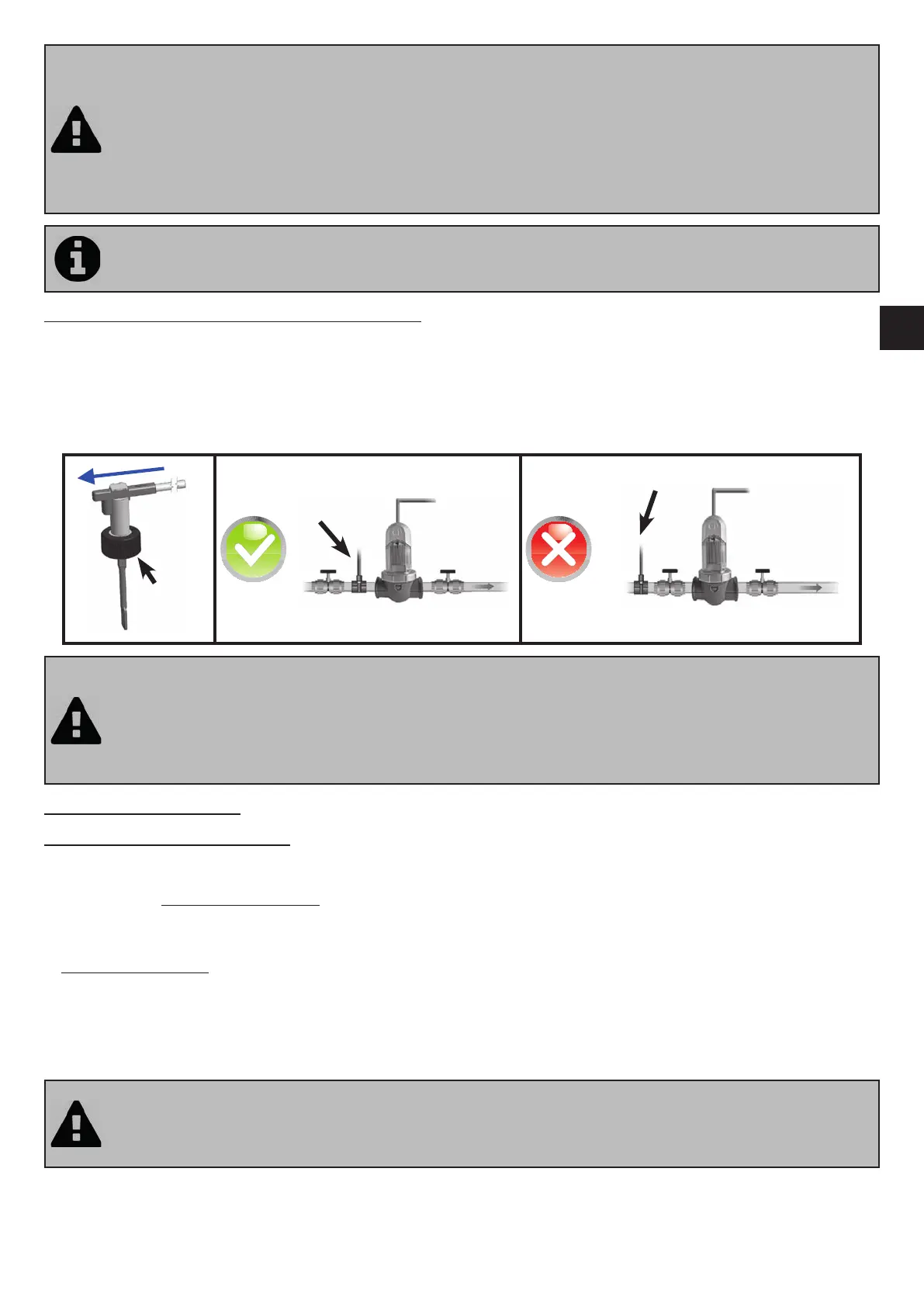 • If you installed the cell on a by-pass, it is recommended to t a check valve downstream from the cell