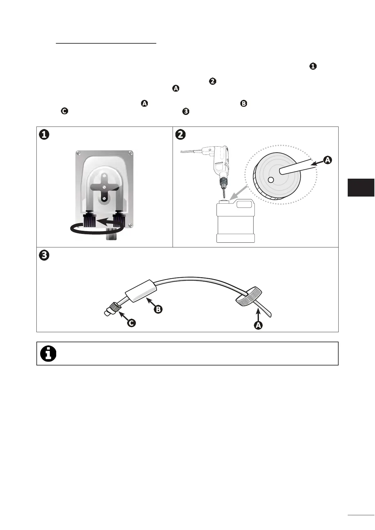 • Unscrew the connector cap and aach the hose to the connector at the inlet of the pH pump, see gure . Screw