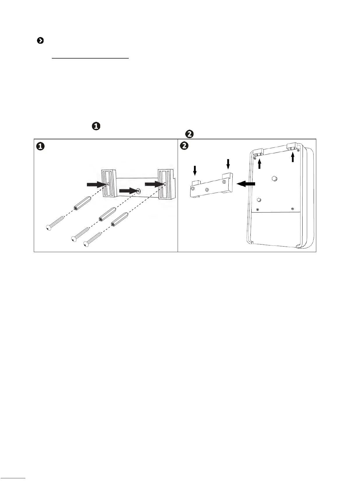 - Secure the mounng (provided) to the wall or to the waterght panel using screws or wall plugs (not