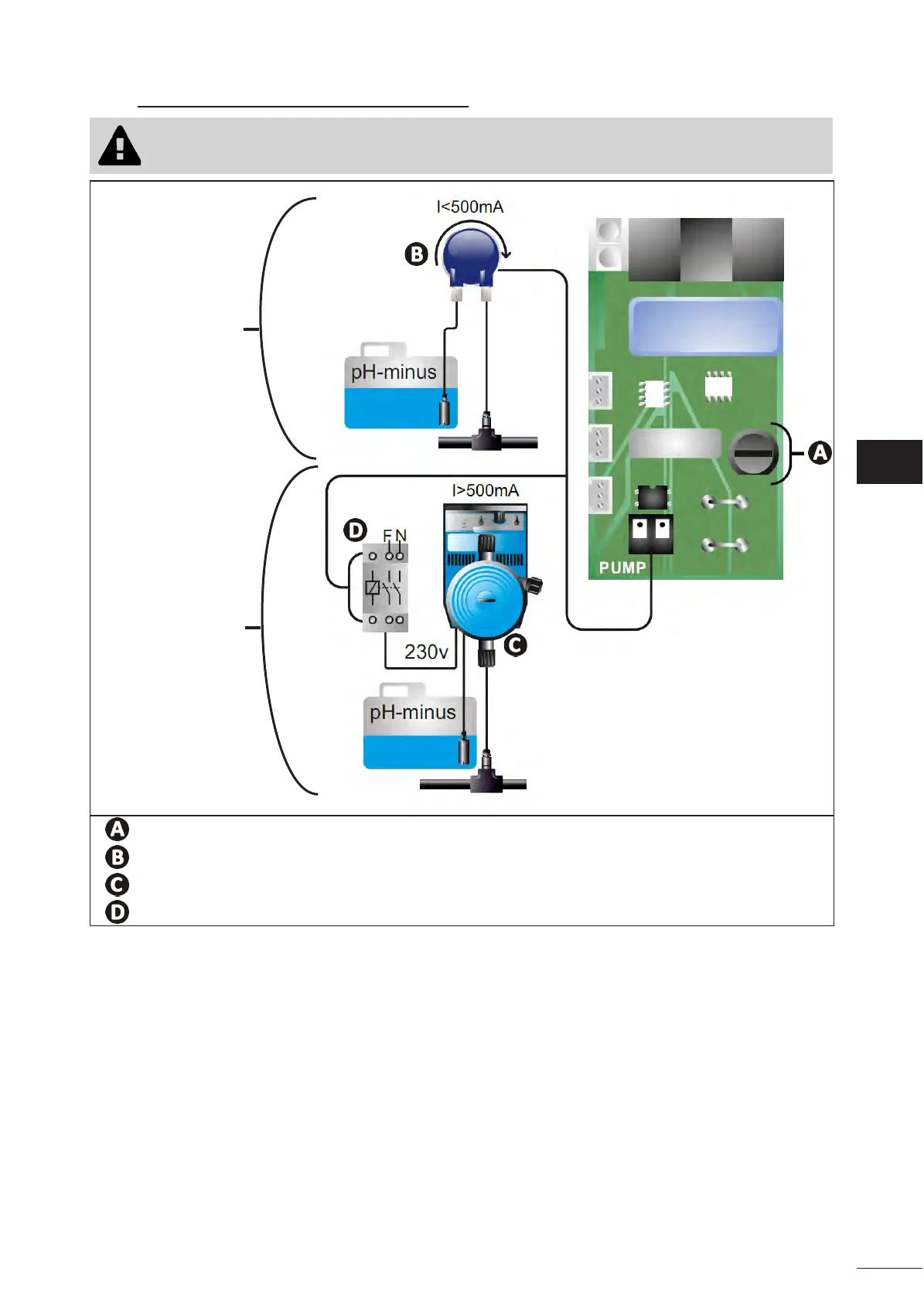 Above 500mA, the pH pump connecon must be protected by a circuit breaker with a suitable residual