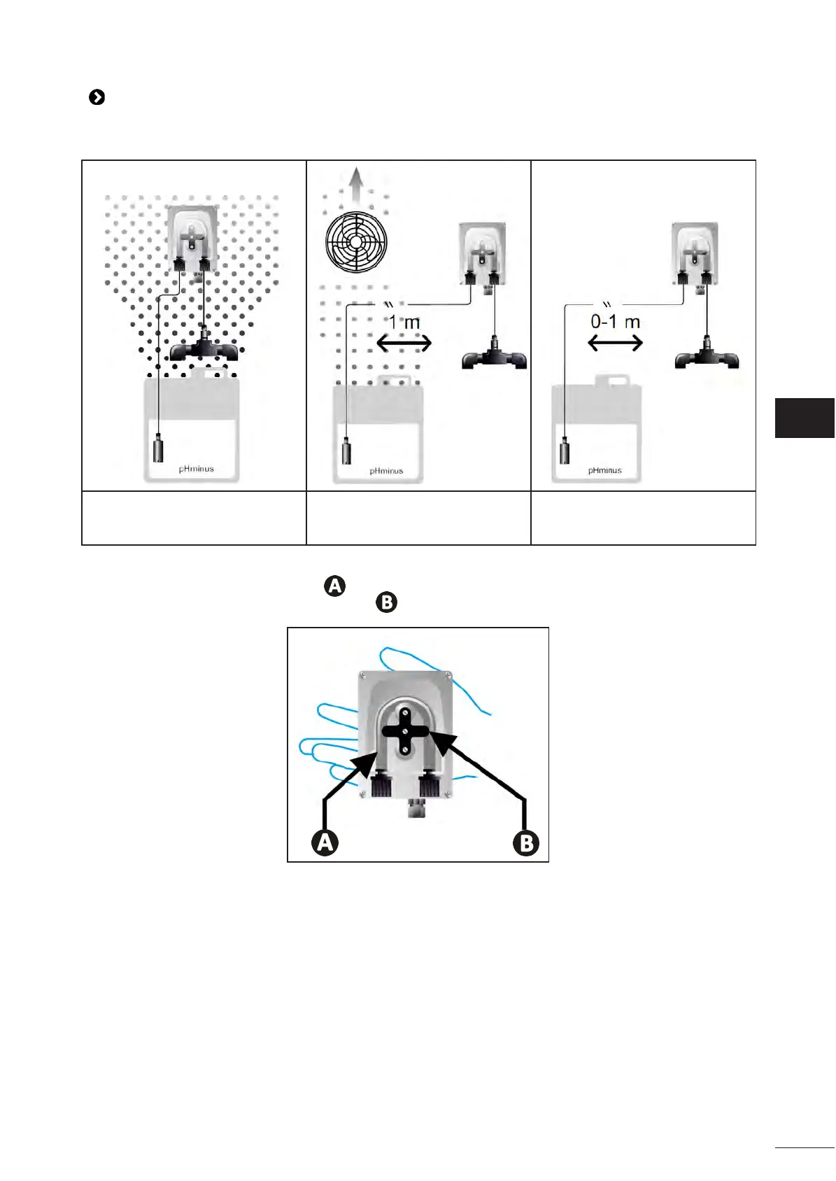• To prevent the pump from operang when empty, check the level of the pH-Minus (acid) container every 2 to 12