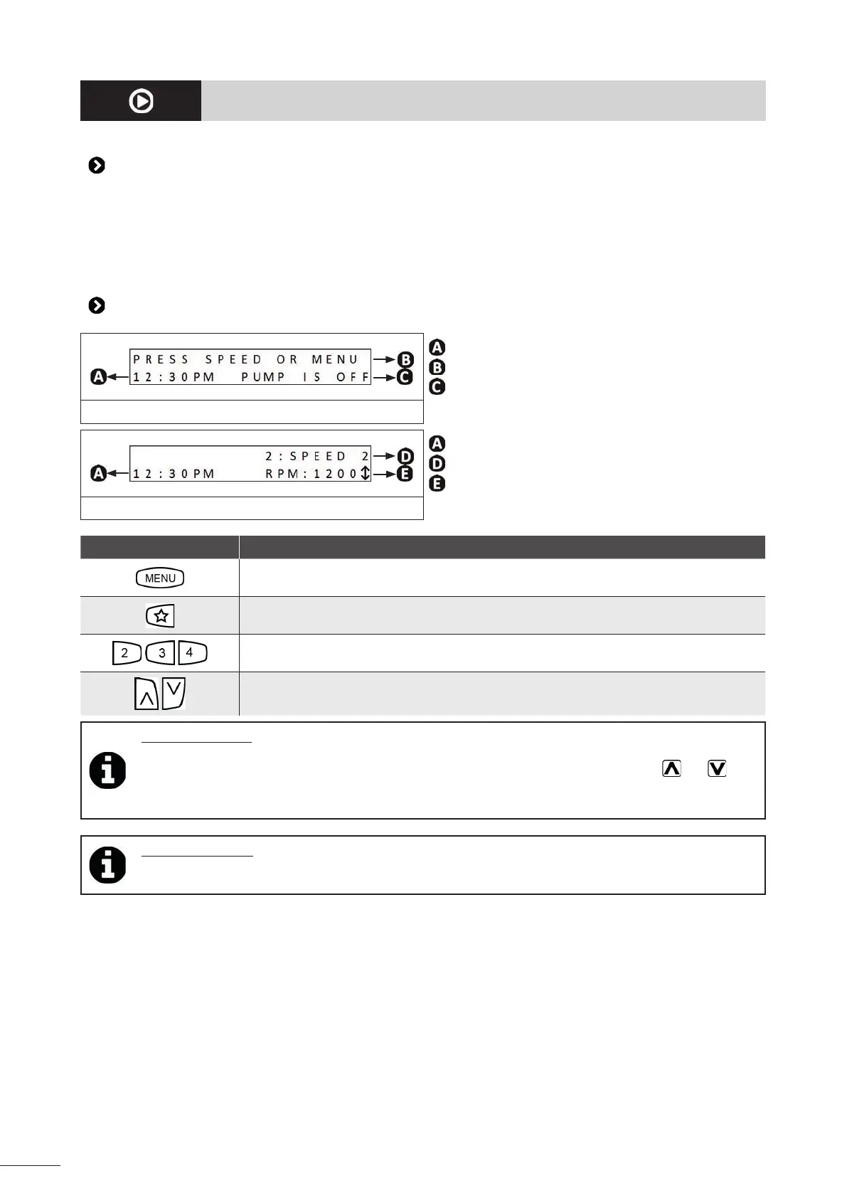 • ↕ = indicates that the speed can be increased or reduced in intervals of 10 rpm using the
