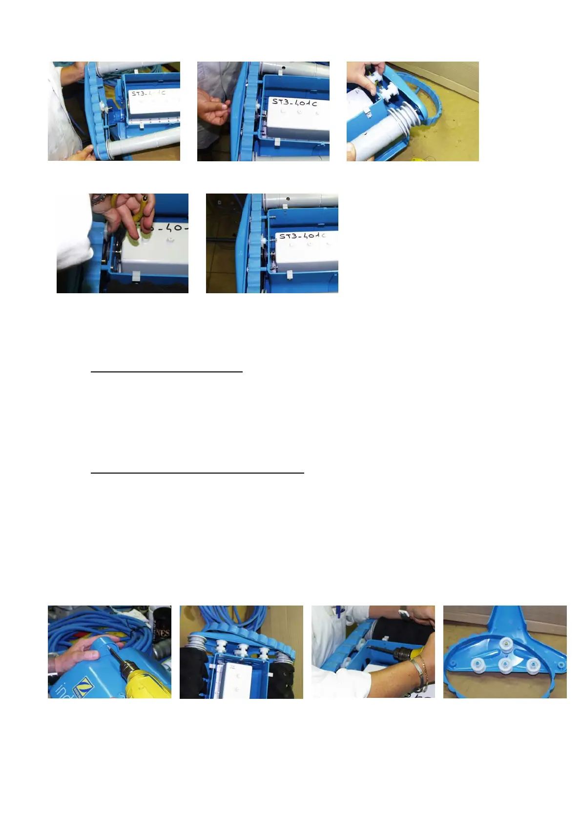 Before removing the track plate, remove the bumper and the motor protective screen.