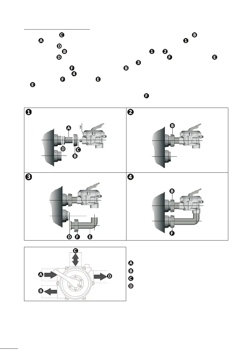 • Insert the gasket ( ) into the threaded orice marked "TOP" of the mulway valve. Pass a nut ( ) around the short