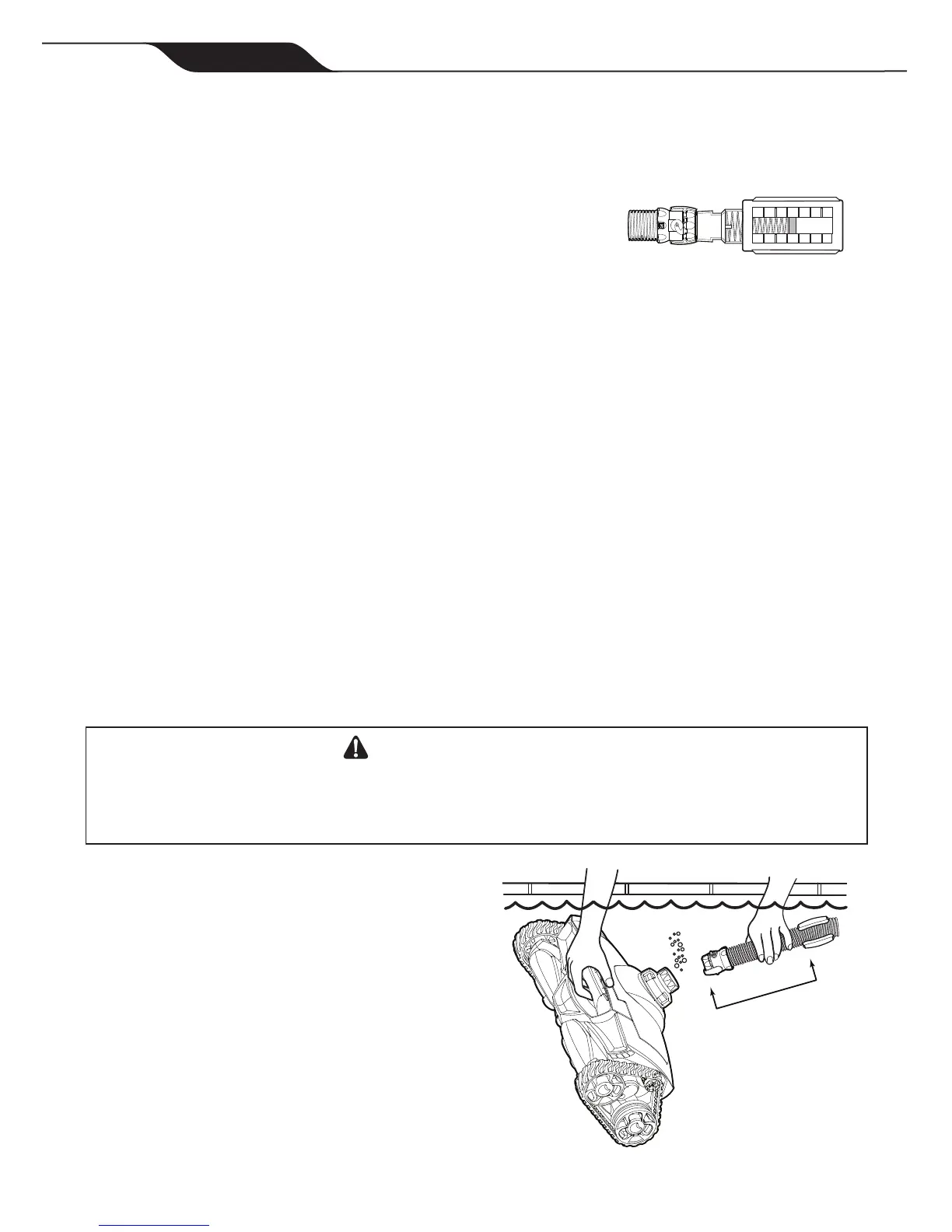 Déconnectez la tête du nettoyeur et fixez la jauge d’écoulement. Maintenez la jauge d’écoulement sous l'eau et