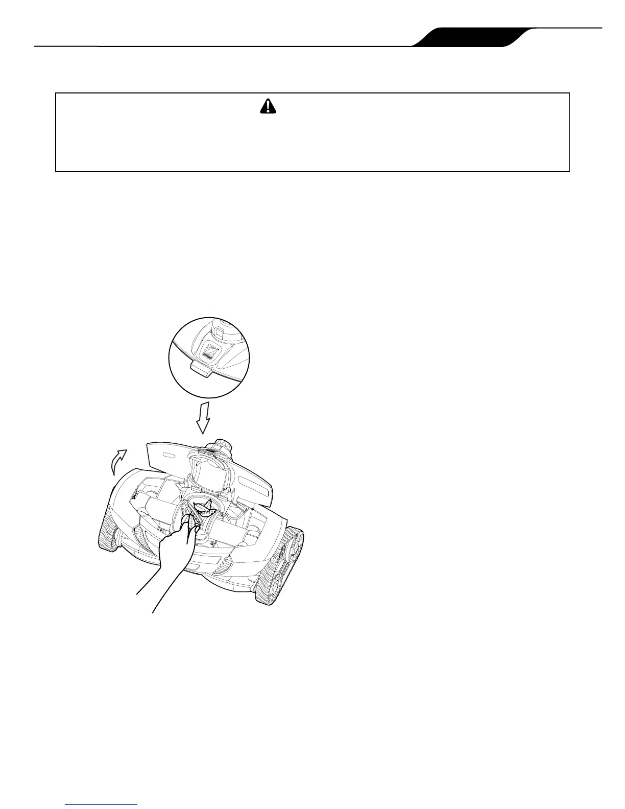 To avoid serious injury, make sure that the cleaner is disconnected from the hose and the suction pump used for the cleaner is turned