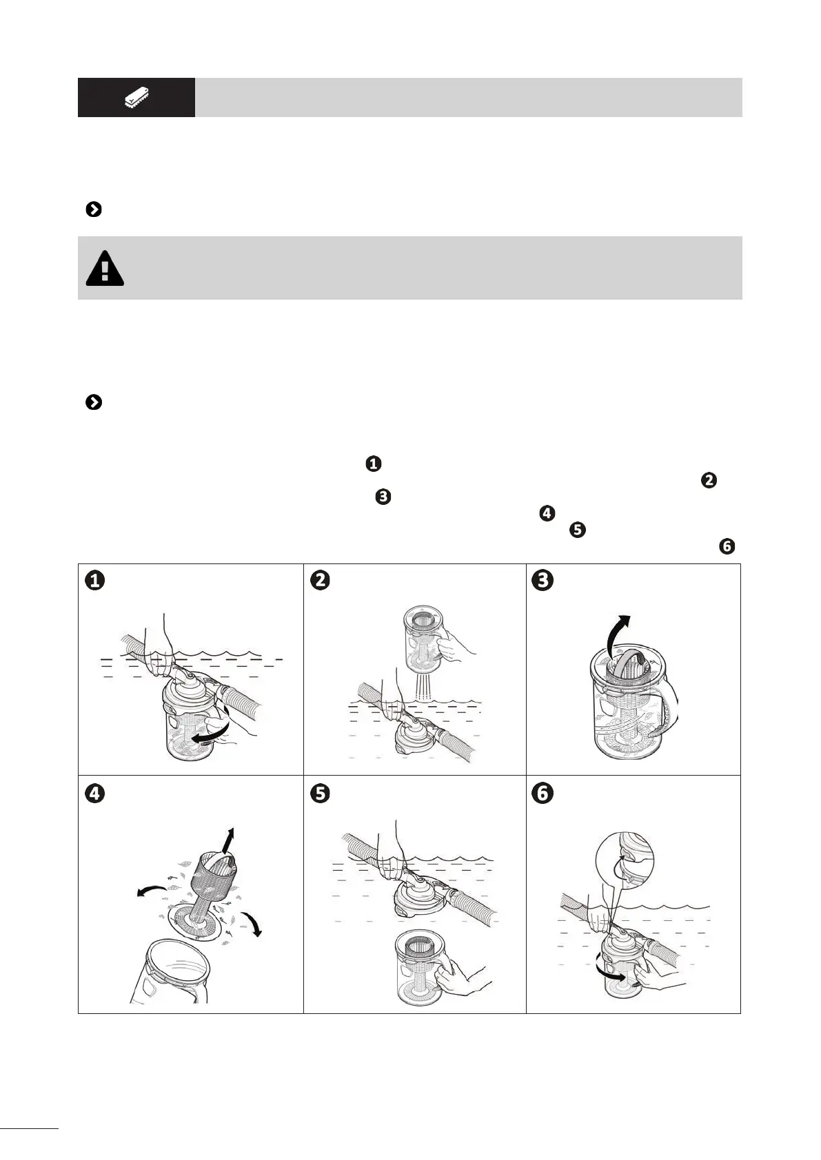 • Before cleaning (and before you put the cleaner back into the water), start the ltraon pump