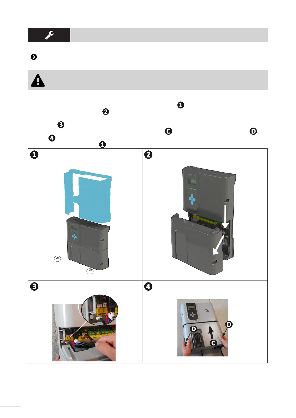 • Posion the module on the chlorinator according to step and screw (x2) according to step , see