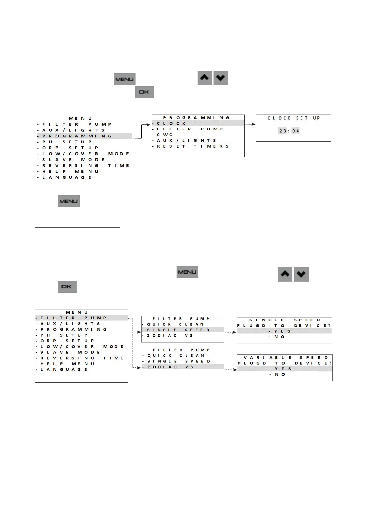 • To declare the presence of the lter pump, press . Browse the menu using the buons.