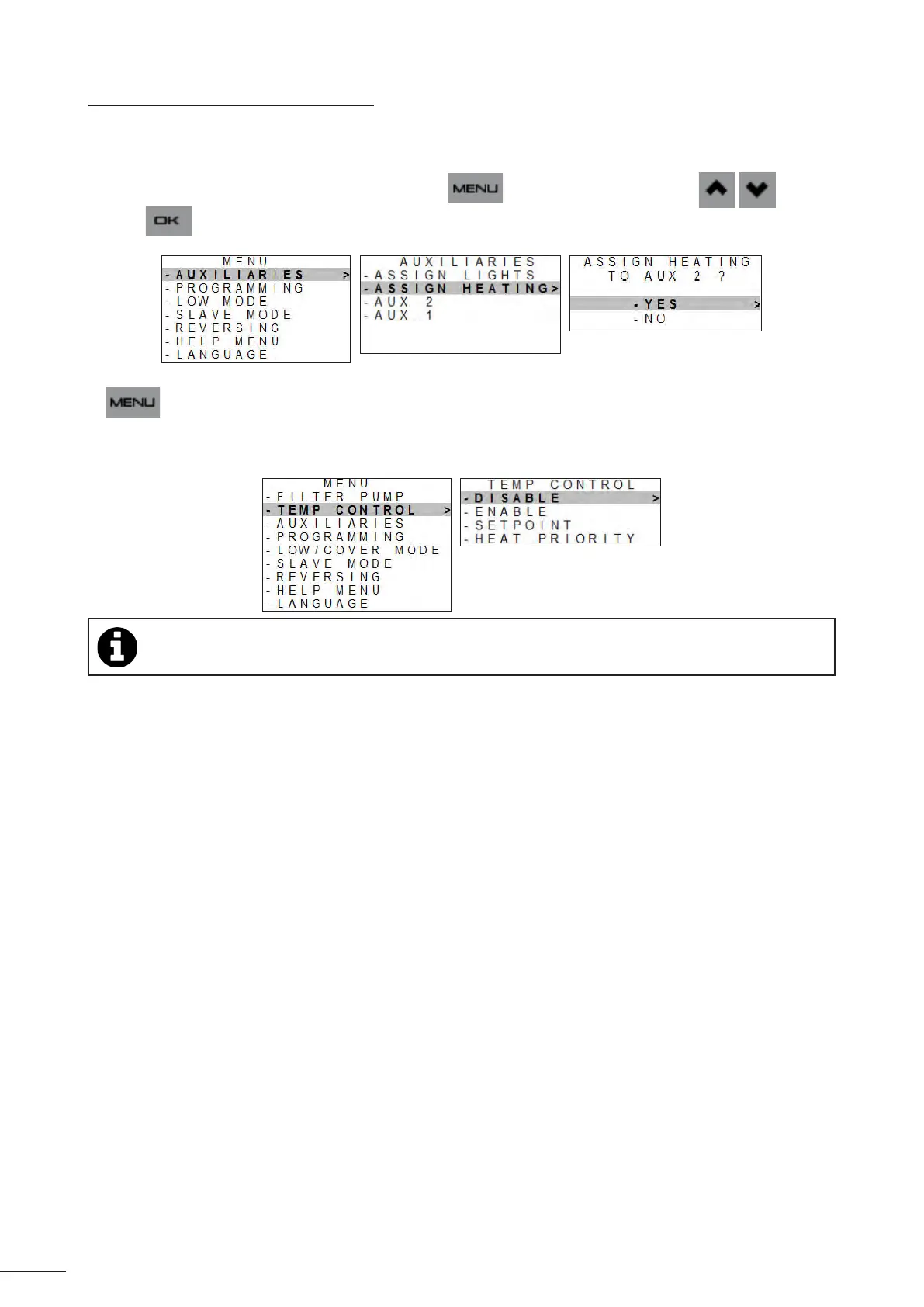 • Once the heang system has been declared, a dedicated sub-menu called "TEMP CONTROL" is shown in