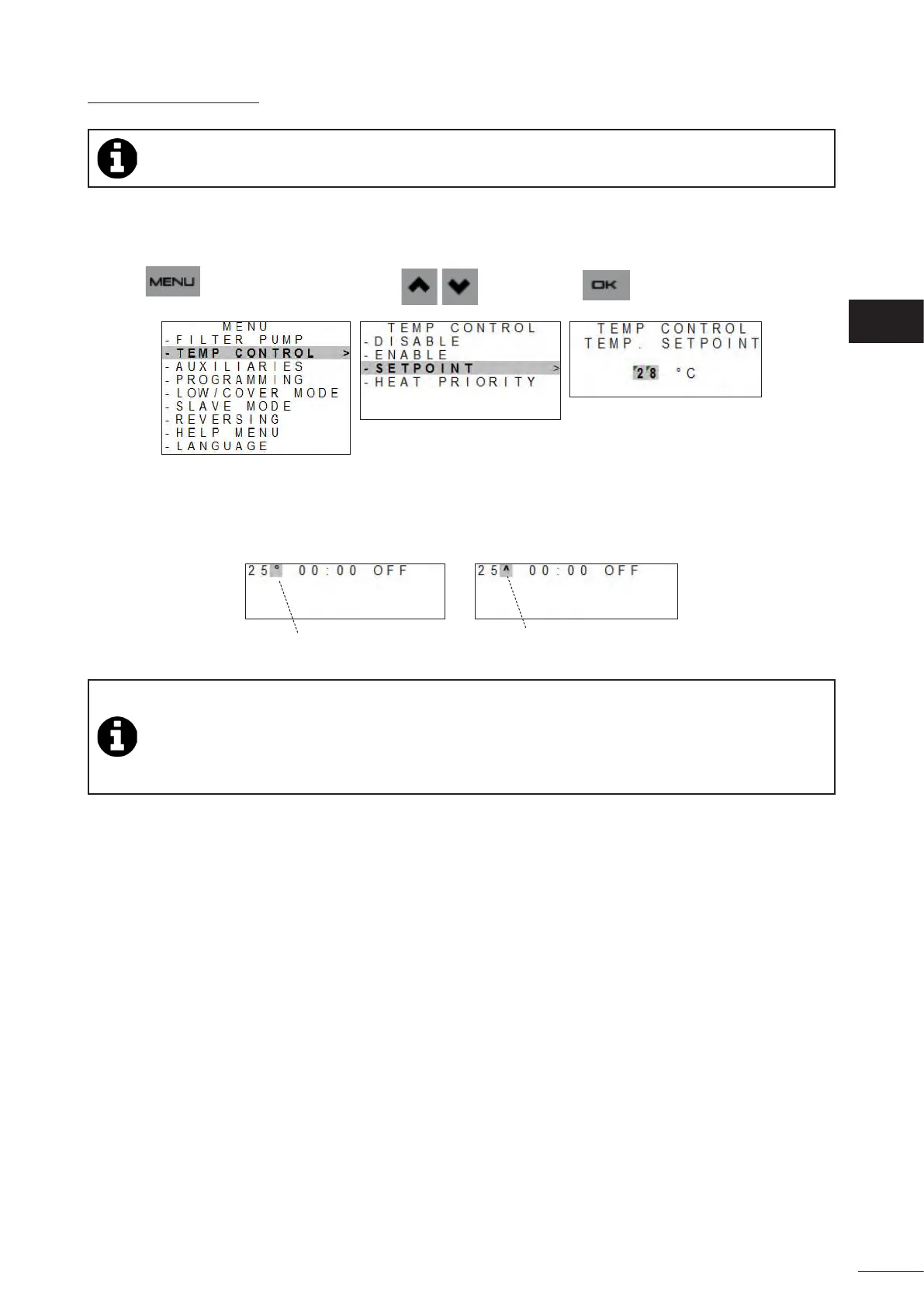 Congure the desired water temperature setpoint. The default value is 28°C.This value can be set between 15 and 32