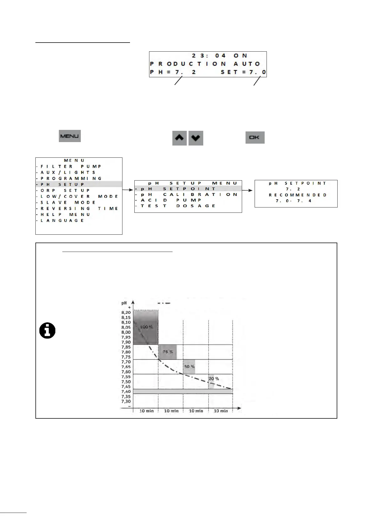 • pH ≥ 7.85: 75% injecon (7 min 30 sec) & 25% pause (2 min 30 sec)