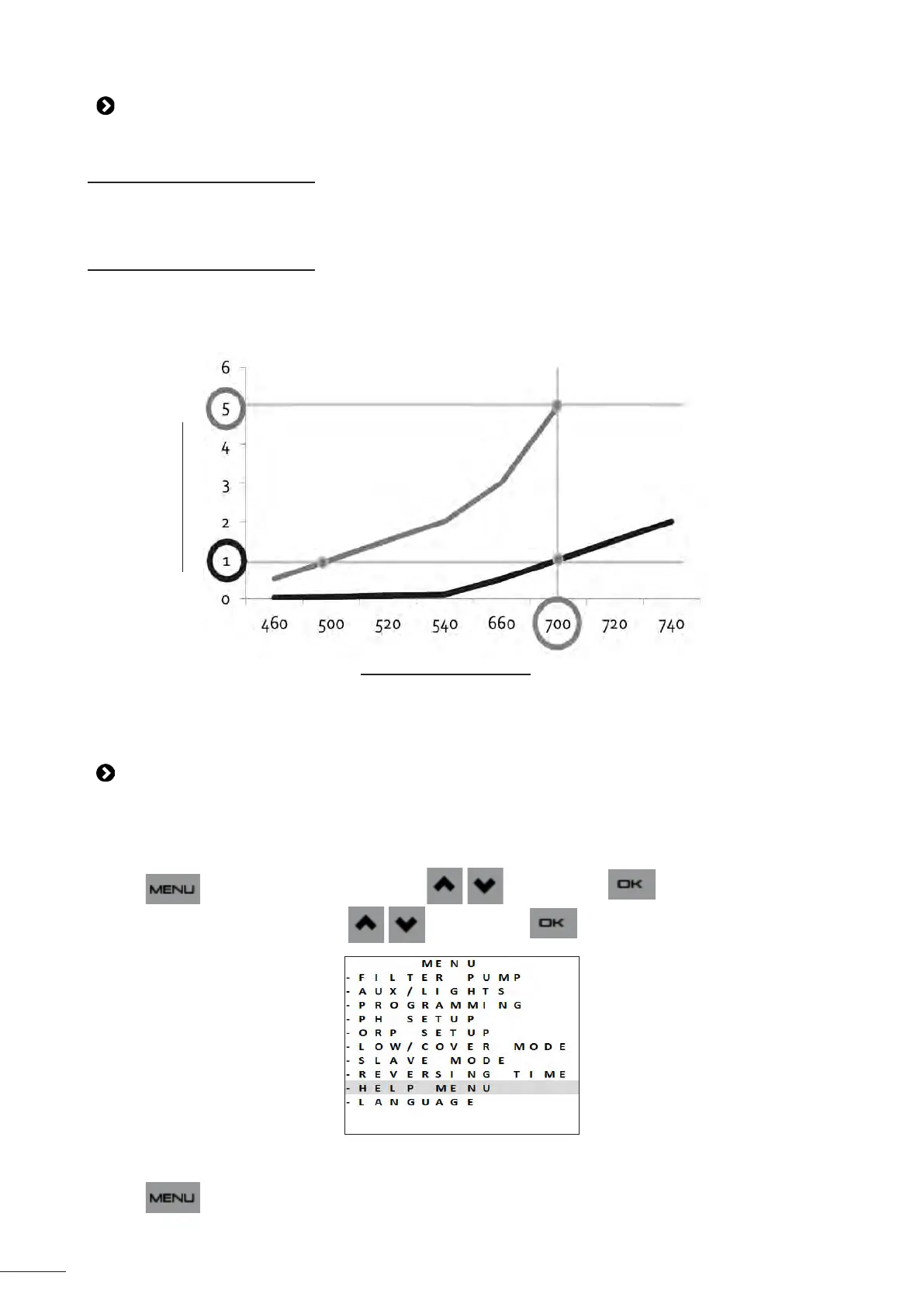 The user can therefore adjust the chlorinaon requirements to 700 mV to maintain a level of 1 ppm in the pool.