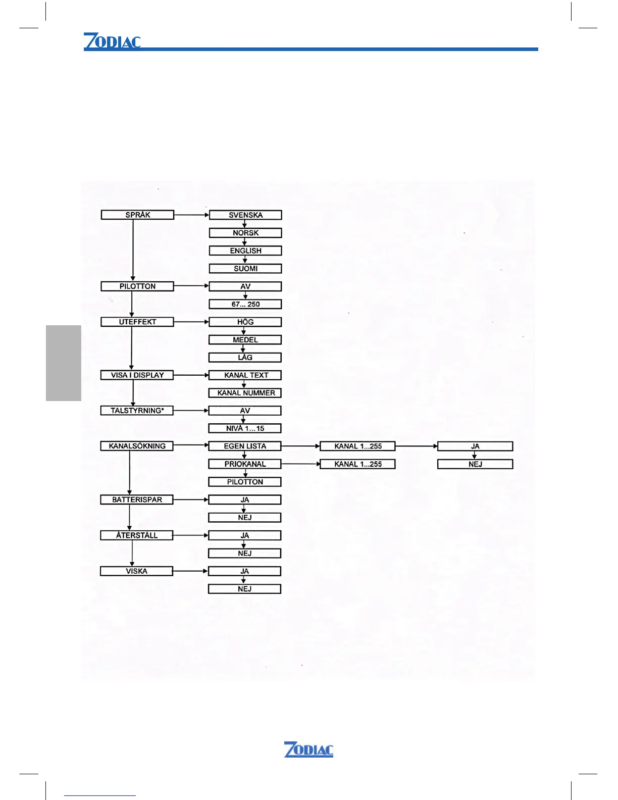 Zodiac Team Pro + - Funktioner Och Inställningar; Menyöversikt