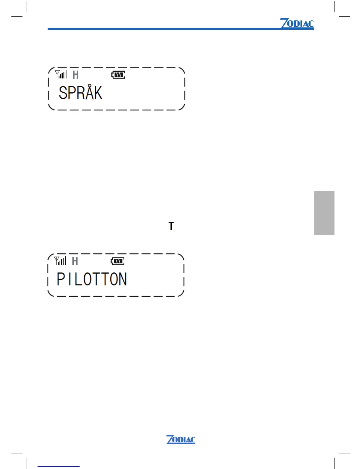 3. Bläddra i menyn med [UPP] eller [NED] tills PILOTTON visas.
