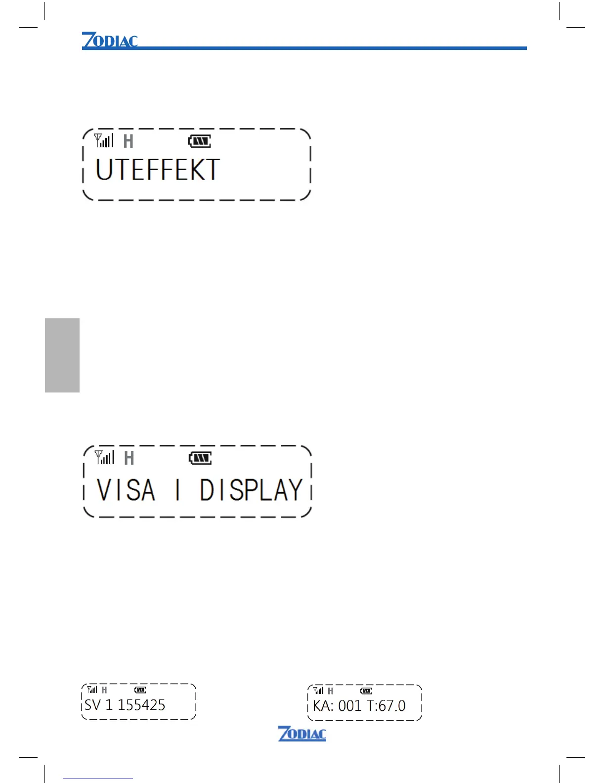 för låg uteffekt. Om du valt medelläge visas inget tecken för uteffekt i displayen.