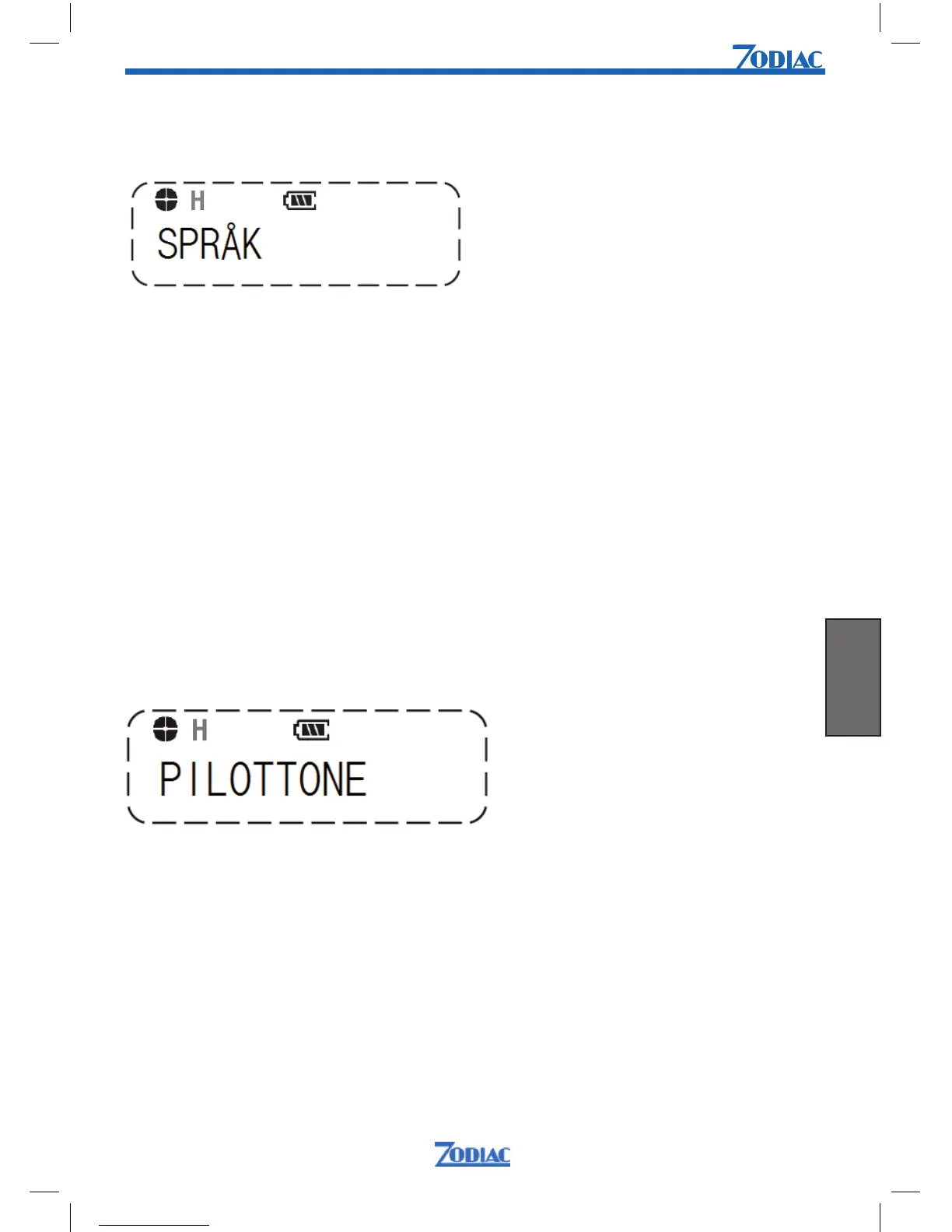 4. Bla i menyen med[OPP]eller [NED] inntil ønsket pilottone vises.