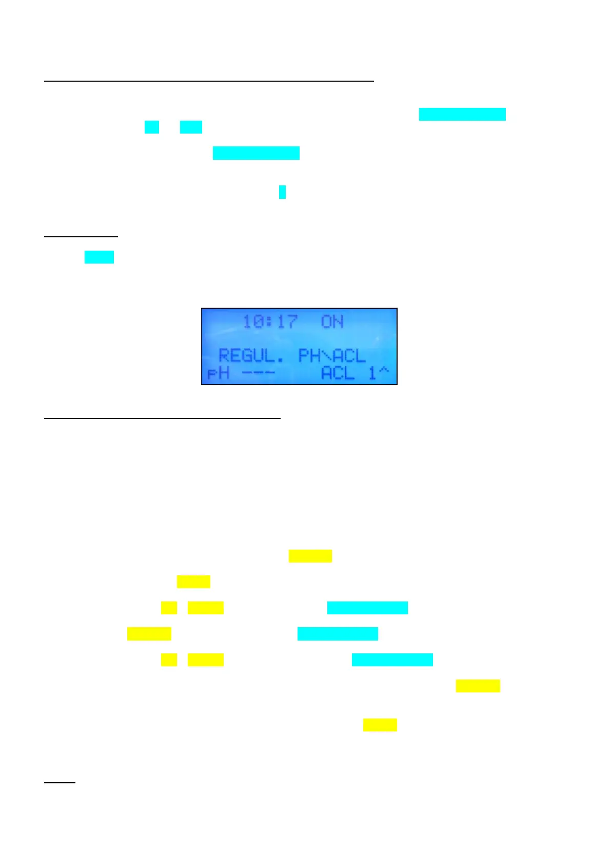 1. Après initialisation, la mention ‘REGUL. PH\ACL’ apparaît sur la troisième ligne de l’écran LCD.