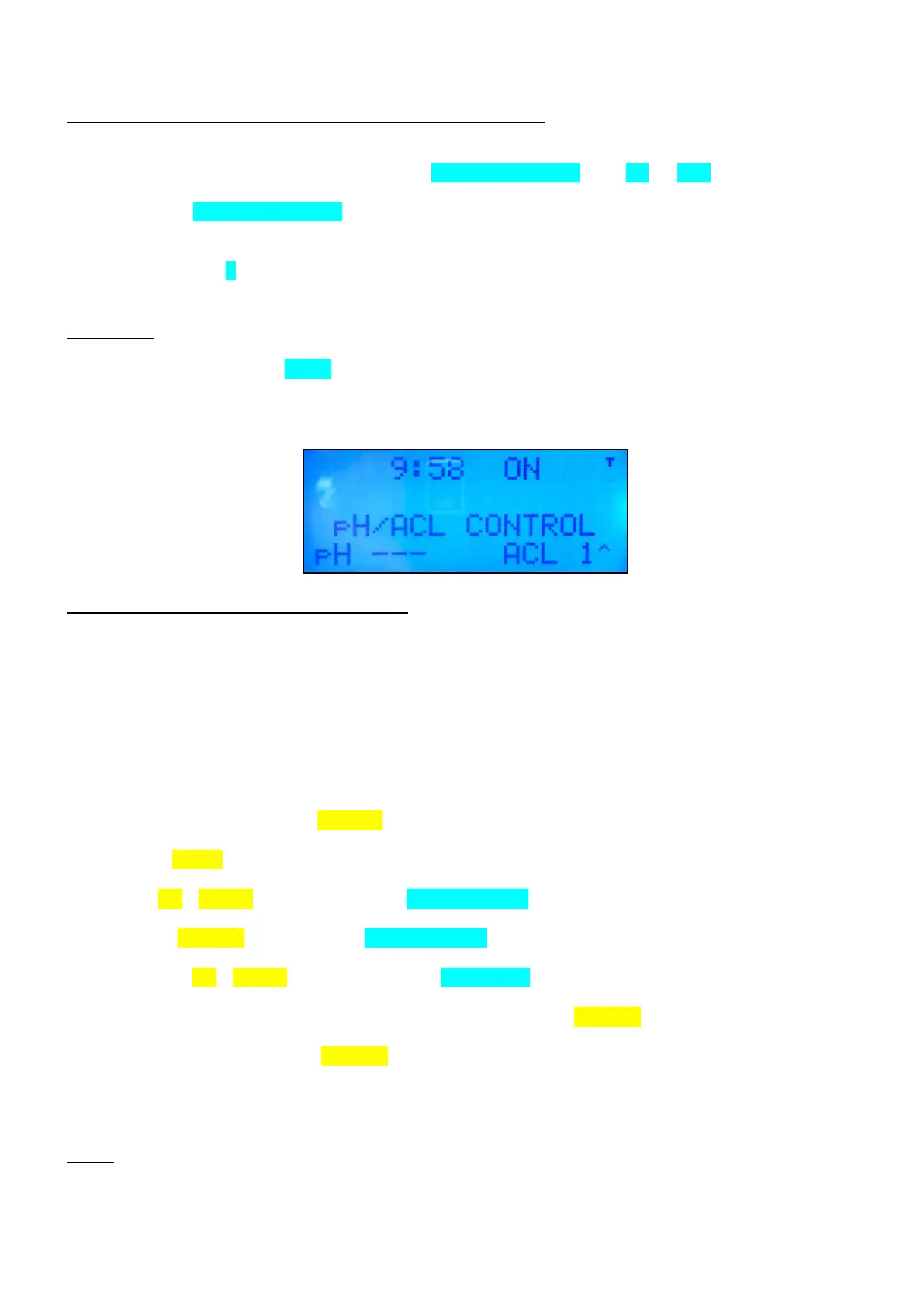 additional lines on the LCD screen, mentioning ‘pH/ACL CONTROL’ and ‘pH’ & ‘ACL’ set points.