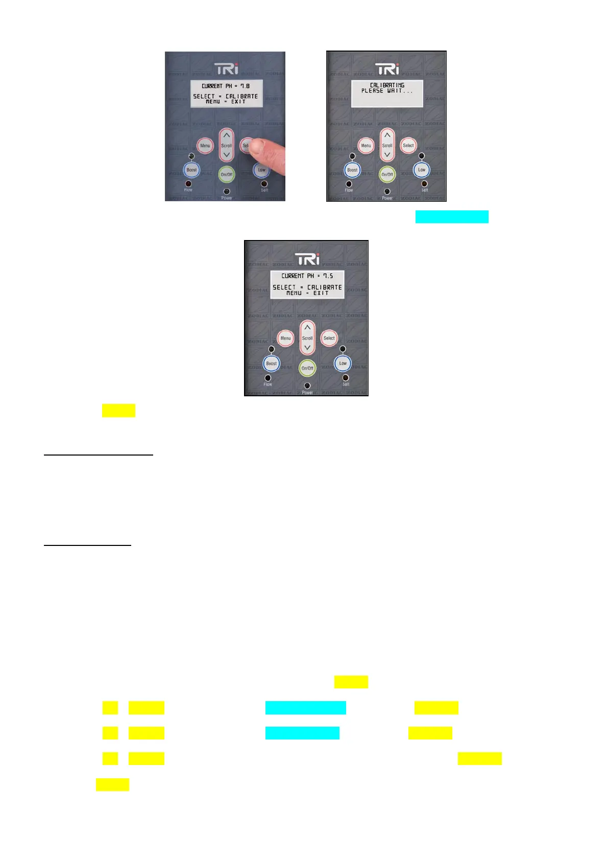 19. Once the calibration is completed, note the new pH value displayed (‘CURRENT pH’). If the value is