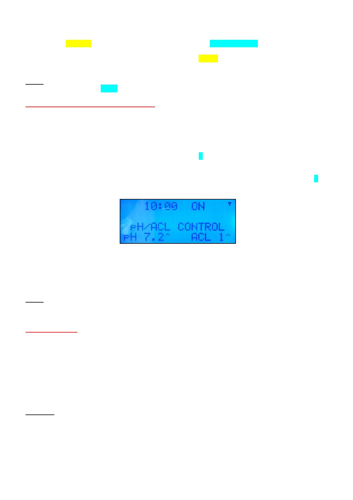 be displayed to the right of the ACL set point value on the LCD screen. Chlorine generation will