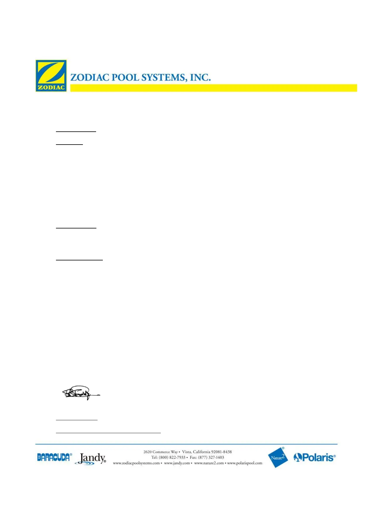 Organization: Zodiac Pool Systems, Inc.