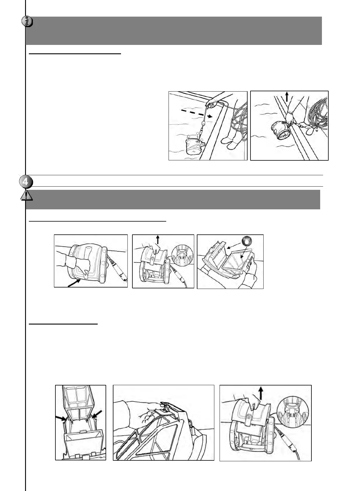 • Only lift the cleaner from the water using the