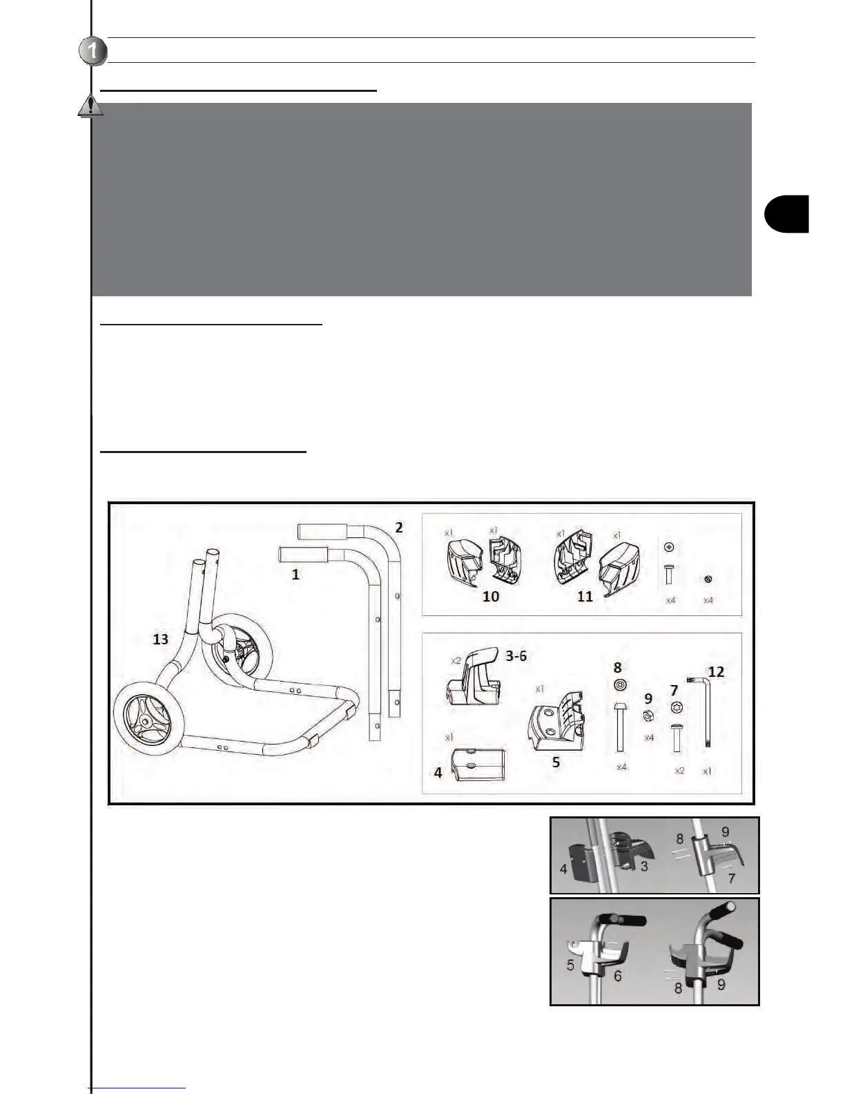 a) Insert the top tubes (1) and (2) into the lower part of the caddy (13). Diagram 1. The handles should be