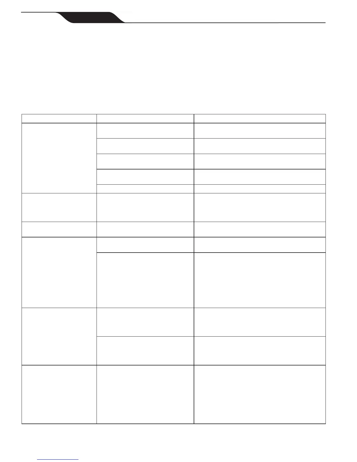 The following table lists some of the more common symptoms, causes and solutions encountered when using the