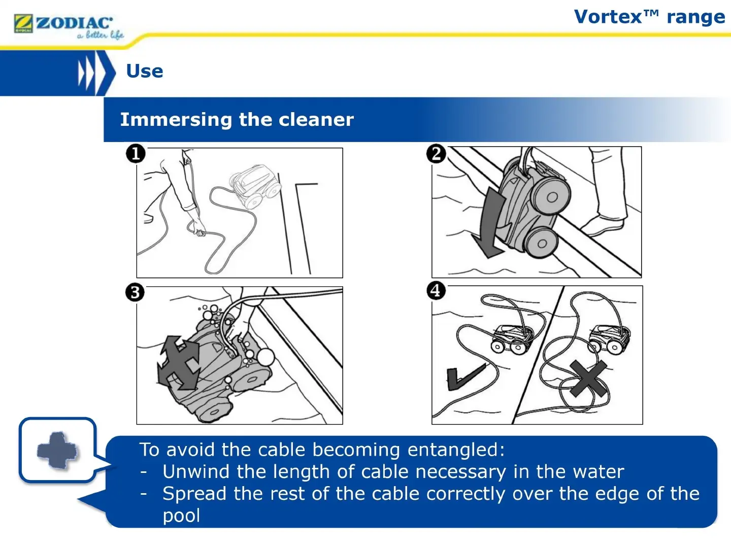 - Unwind the length of cable necessary in the water