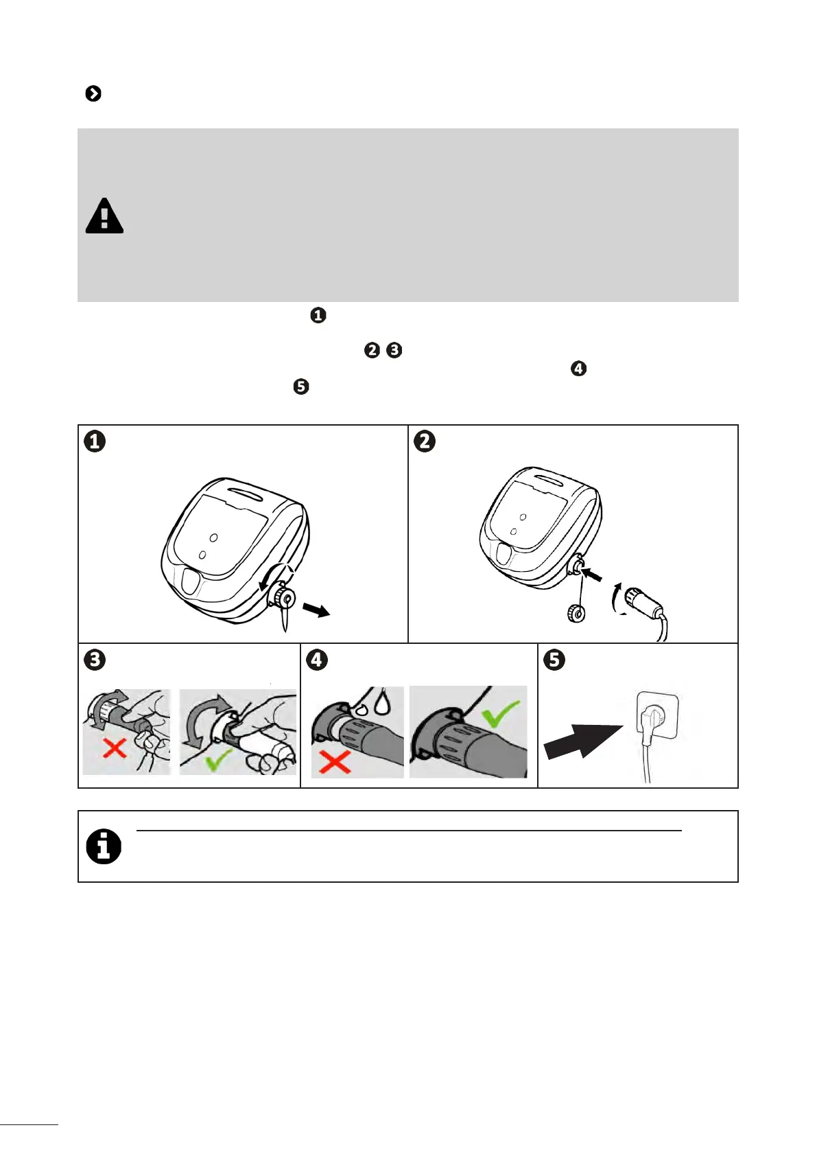 • Connect the power cord (see gure ). Only connect the control box to a power outlet protected by a 30 mA maxi-