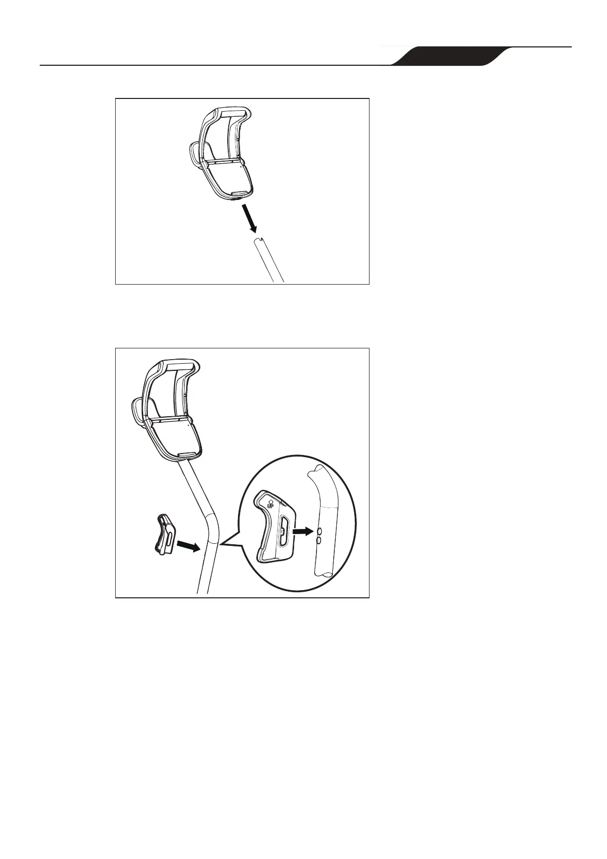 8. Align cleaner hook pins with the top holes in the handle tube and snap into place