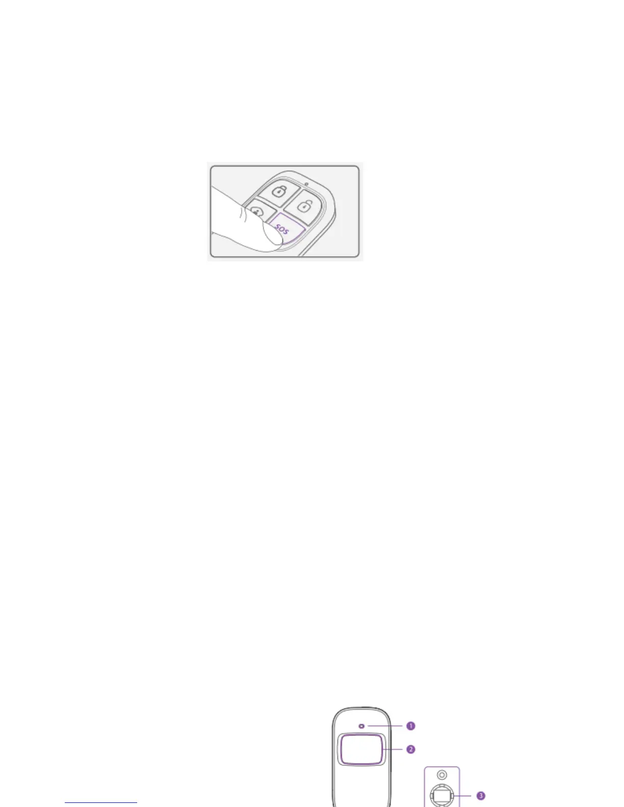 Regardless the status of the system, the alarm is triggered when the SOS button “SOS” is pressed