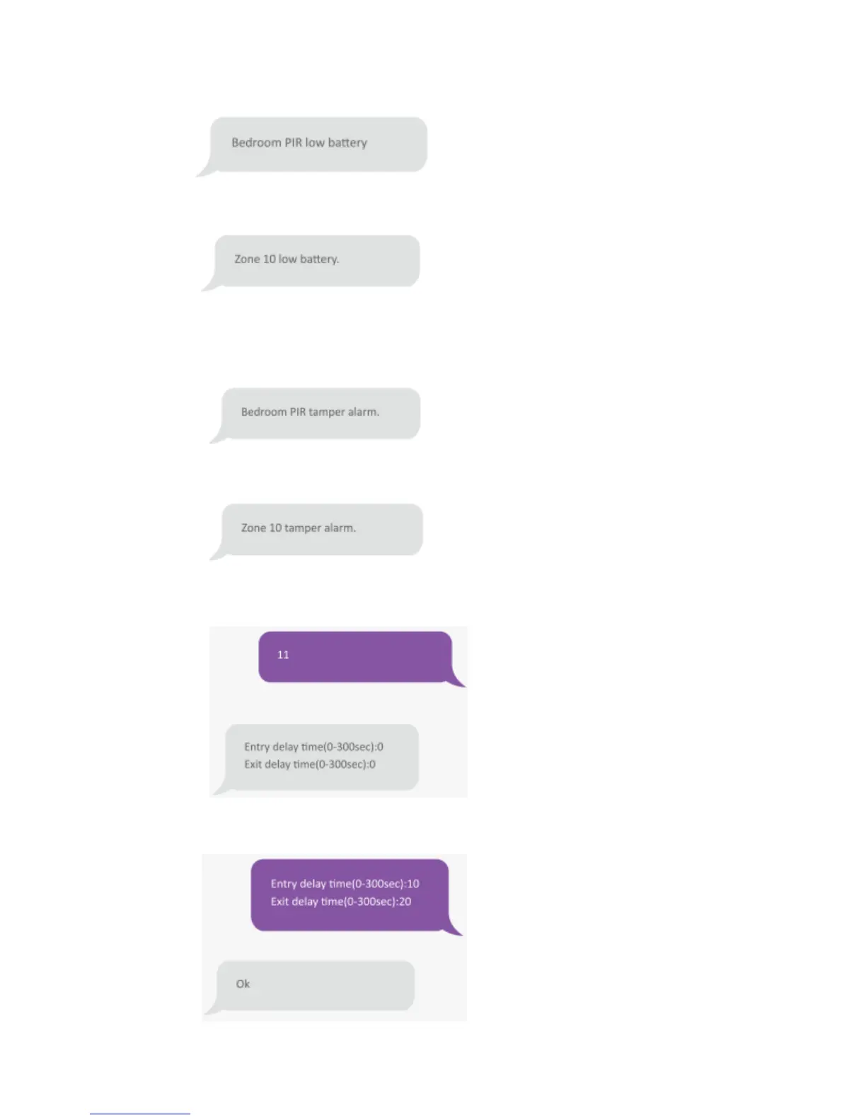 Per sensori assegnati a zone che non sono state rinominate, verrà inviato un SMS con formato