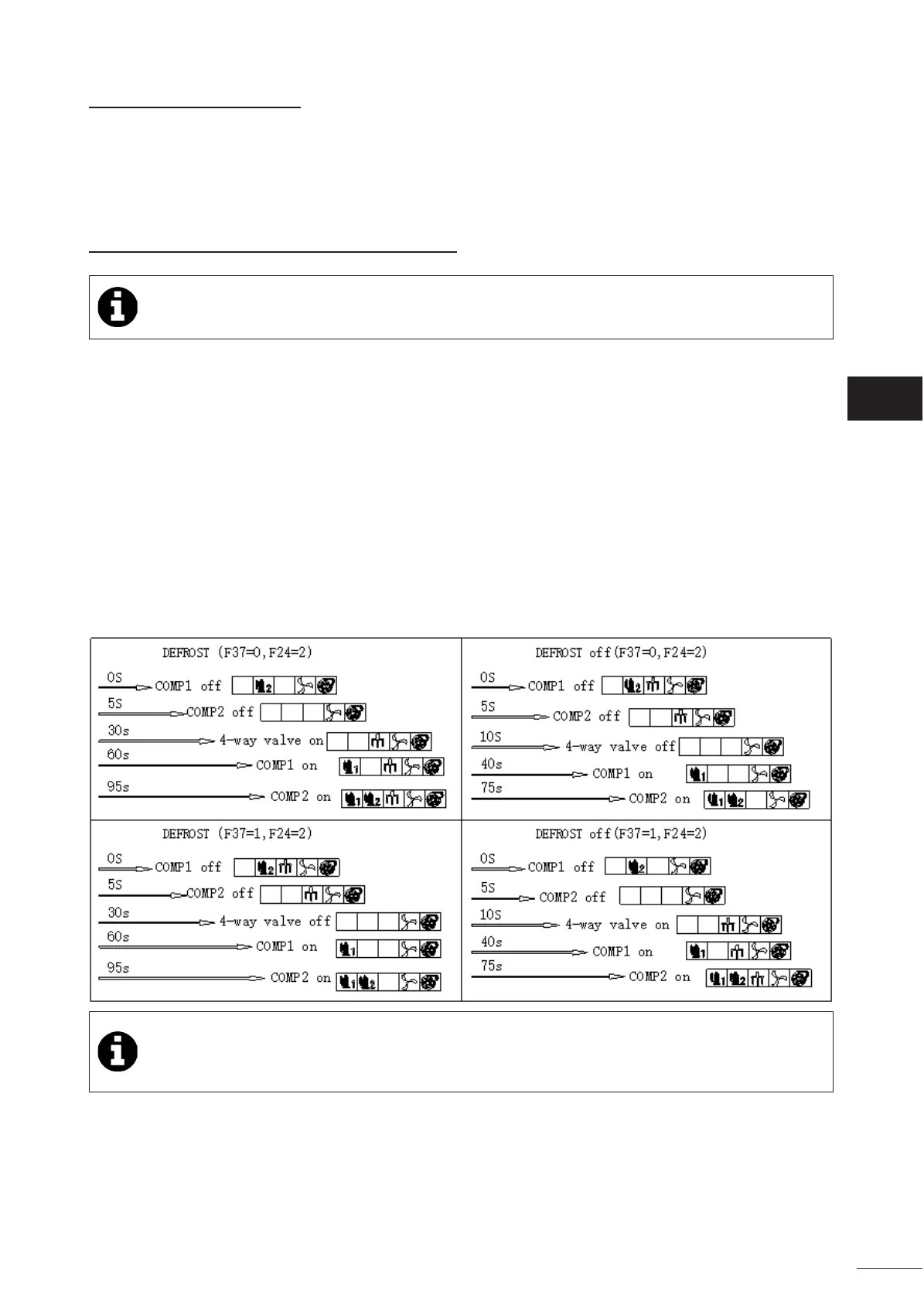 For pumps equipped with 2 compressors, defrosng will only start if both circuits full defrosng condions.