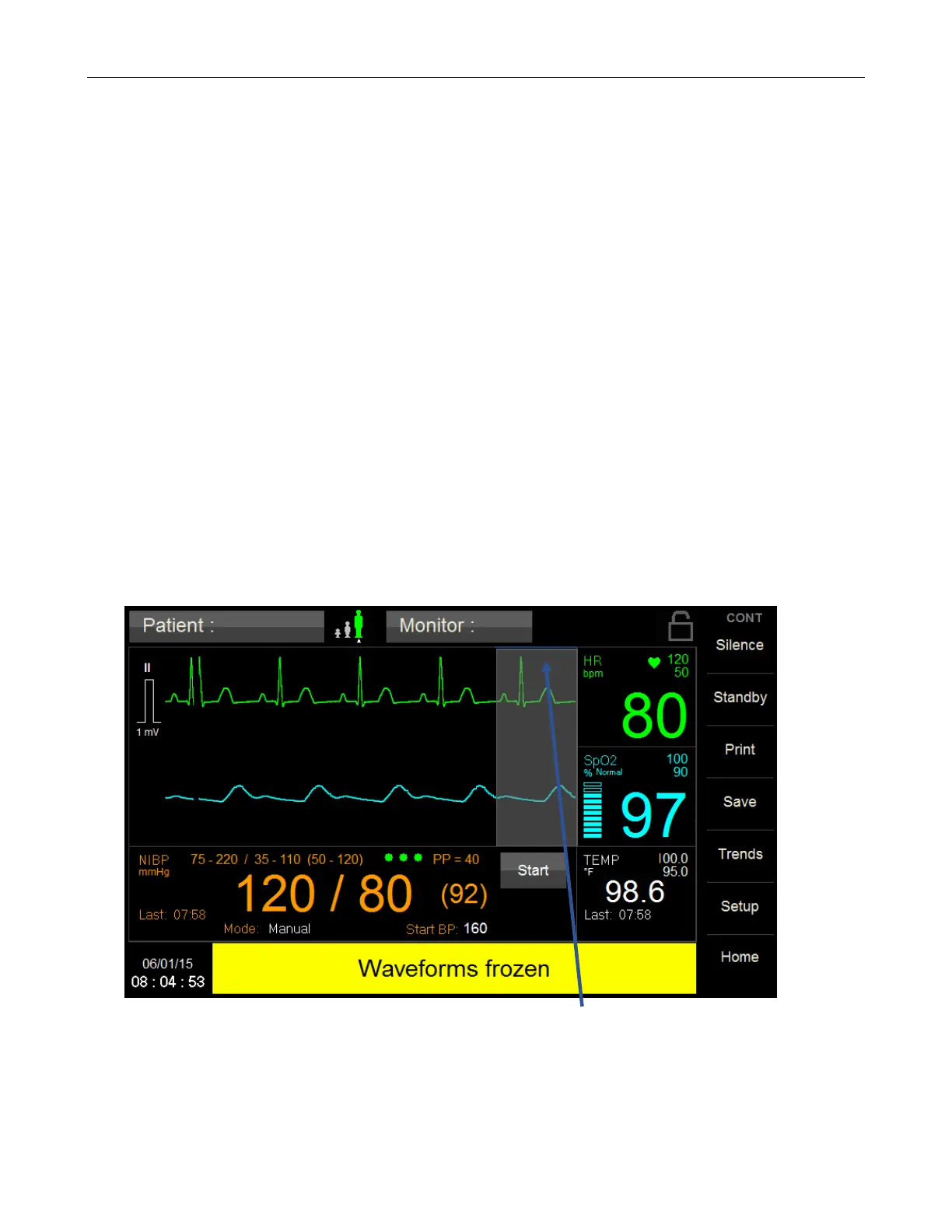 In some clinical environments the user may want to freeze the displayed waveforms.
