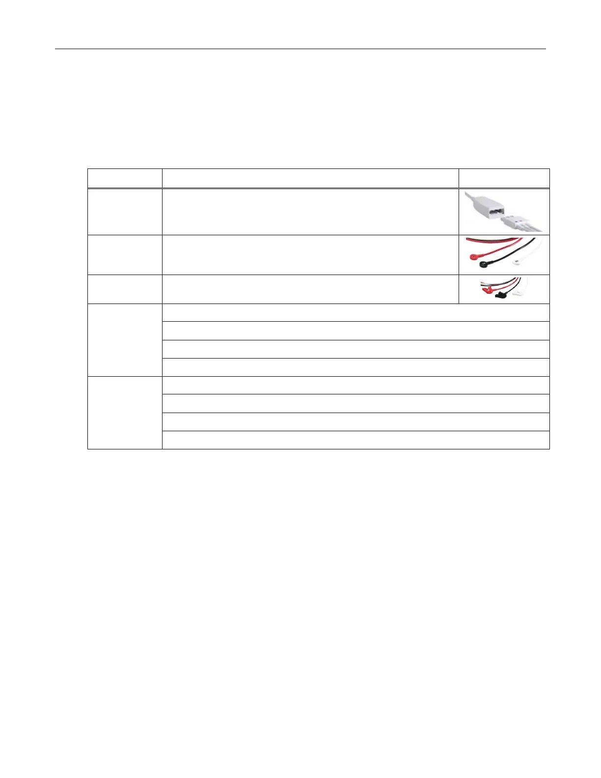 Table 6 indicates the AAMI ECG parts and accessories to be used with 740 SELECT Monitor.